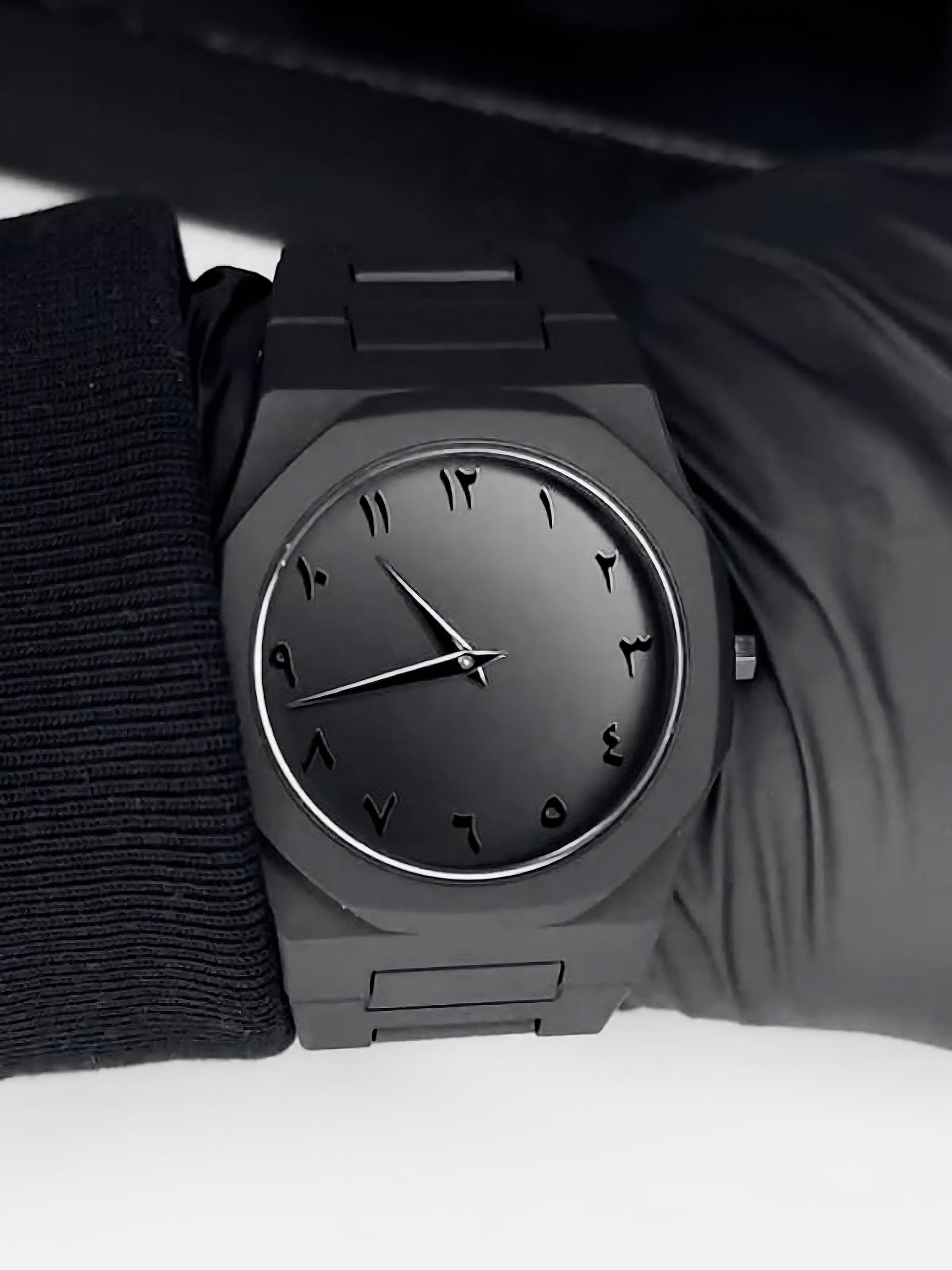 Crafted for the bold, the Arabic Aura Watch redefines luxury in minimalism. With a sleek all-black dial, iconic Eastern Arabic numerals, and a fiber chain with butterfly lock, this masterpiece blends culture with class — a true style statement for those who stand out without shouting.