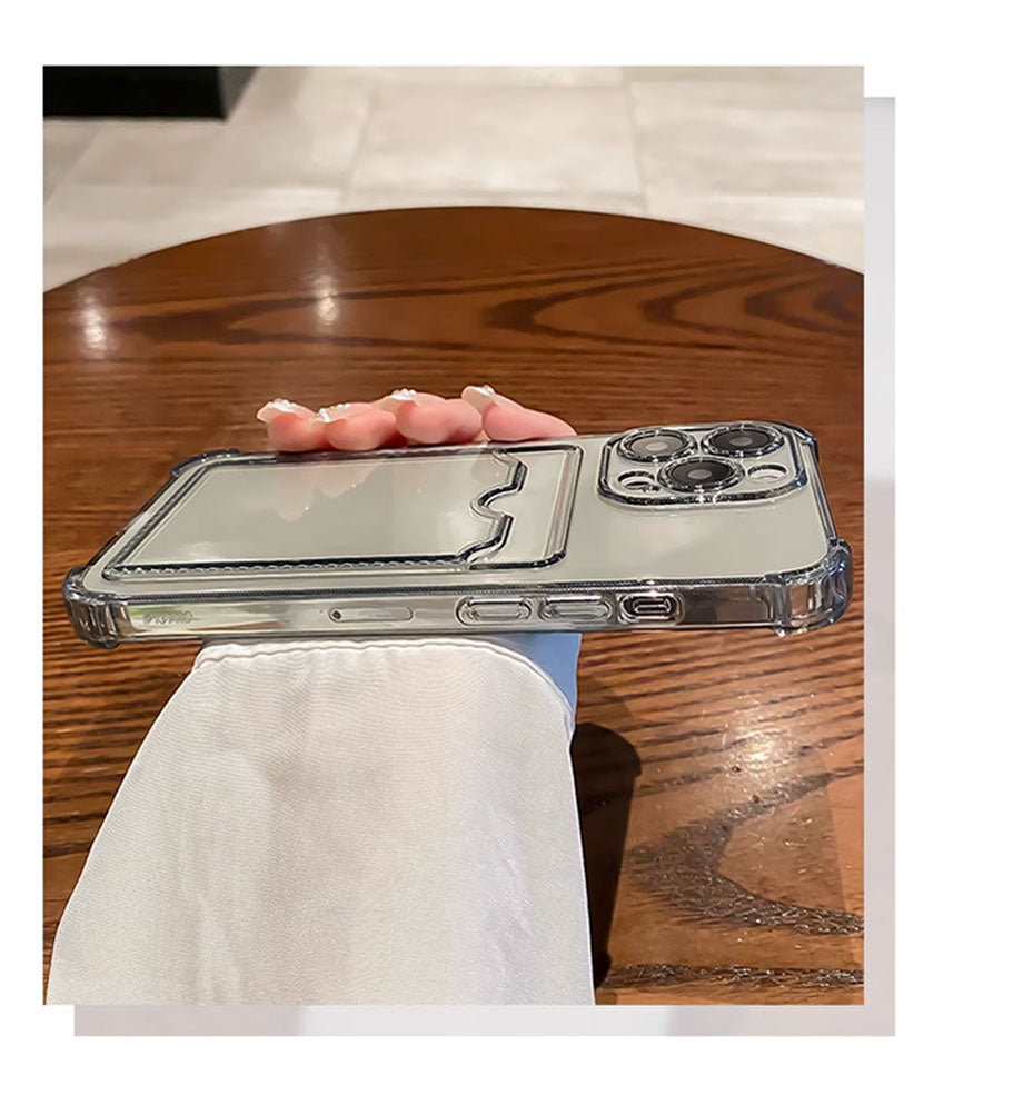 Transparent Card Slot Bag Holder Case For iPhone 15 14 13 12 11 Pro Max Mini X XS XR 7 8 Plus Clear Wallet Shockproof Soft Cover